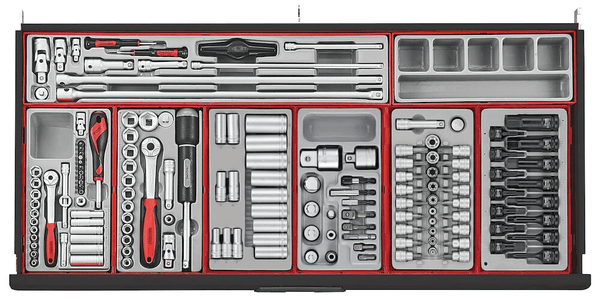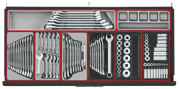 • Built up using the unique Teng Tools Teng TT-Tray™ modular system and covering just about every tool most people ever need including imperial and 3/4” drive.