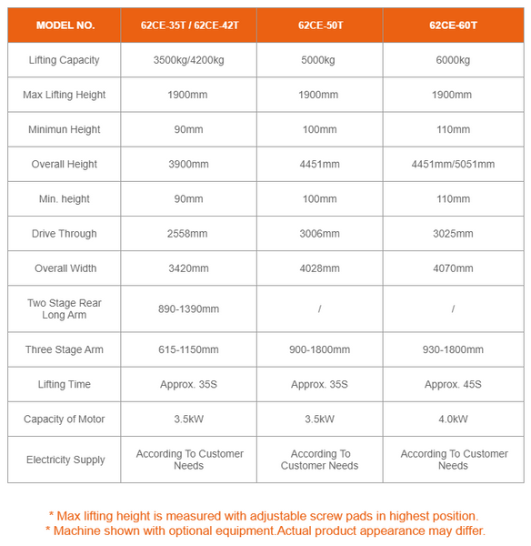 Price is GST Incl. 5/2/2 WARRANTY POLICY 5 years for lift structure 2 years for hydraulic components 2 years for electrical parts *Equipped with front and rear three-stage ultra-thin arms(only...